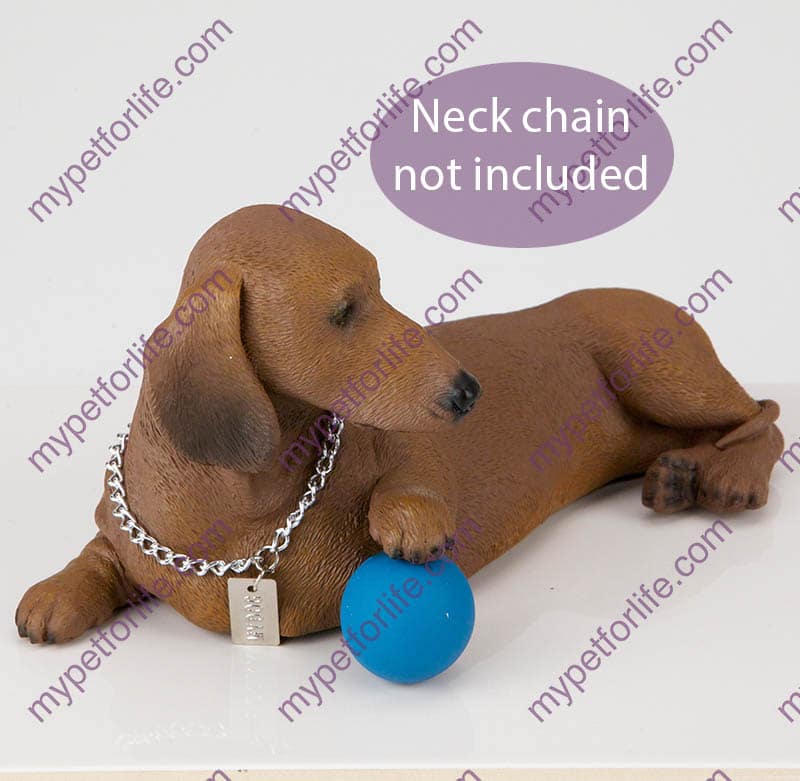 Our Dachshund, Red Photo Urn is made from solid hardwood lumber and will display your favorite “horizontal” pet photograph in an acrylic holder which is attached to the front of the urn, as well as the figurine of your choosing. For an additional fee, this Photo Urn includes your personal (4 line 100 character) inscription on a premium leaded brass nameplate centered below the photo holder. Pet’s bagged ashes are installed through removable bottom which is secured with screws, providing tamper resistant protection.