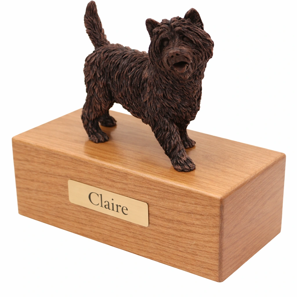 We’re very pleased to offer Forever Pets’ line of outstanding, high-quality cremation urns. This Cairn Terrier urn and the rest of their line of figurine cremation urns are our most popular pet urns. Stunning detail, beautiful wood grain finishes and fast delivery, at the lowest prices; it’s a wonderful keepsake with which to preserve the memory of your beloved departed family member.