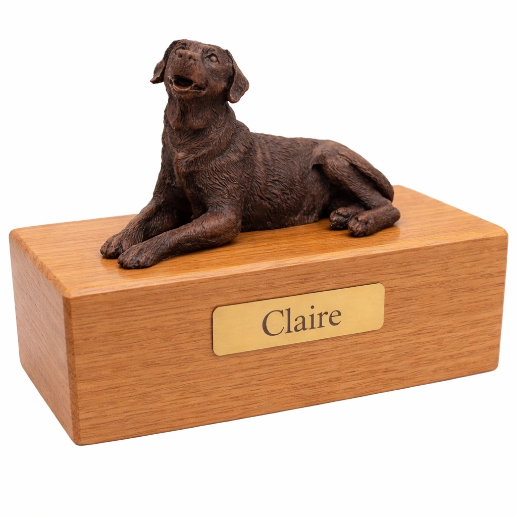For an additional fee, this Labrador Retriever dog urn also includes your personal (4 line 100 character) inscription on a premium leaded brass nameplate. Pet’s bagged ashes are installed through removable bottom which is secured with screws, providing tamper resistant protection.