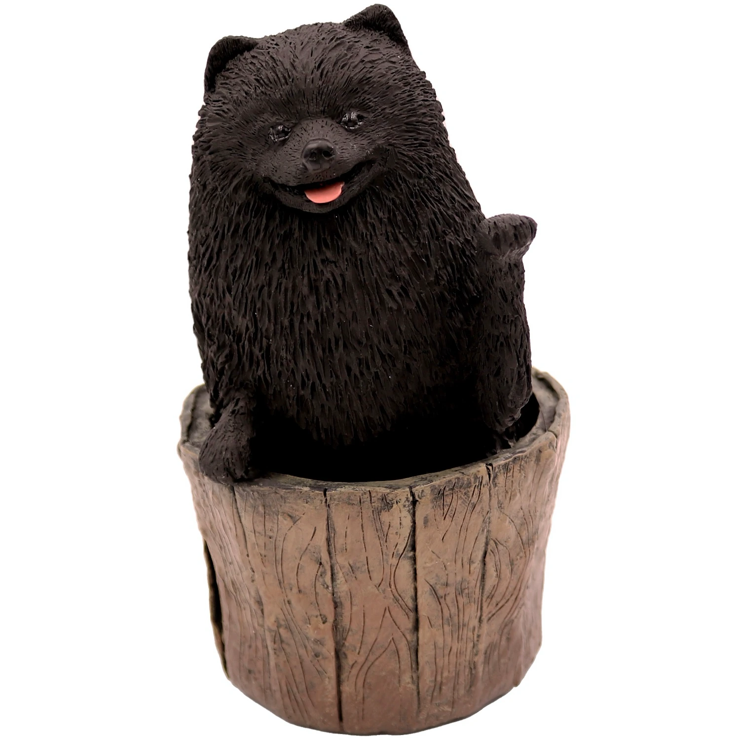 Our most popular urn is our Figurine Urn, made from solid hardwood. (Available in maple, oak, or walnut stain). This urn offers you a choice of over 700 different purebred dog and cat figurines attached to our beautiful wood urn bases. For an additional fee, this Pomeranian cremation urn also includes your personal (4 line 100 character) inscription on a premium leaded brass nameplate. Pet’s bagged ashes are installed through removable bottom which is secured with screws, providing tamper resistant protection. See chart below for enclosure capacity.