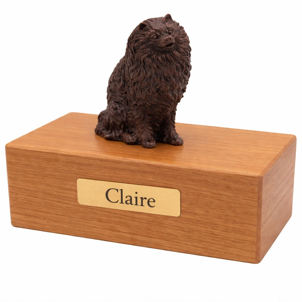 For an additional fee, this Pomeranian dog urn also includes your personal (4 line 100 character) inscription on a premium leaded brass nameplate. Pet’s bagged ashes are installed through removable bottom which is secured with screws, providing tamper resistant protection.