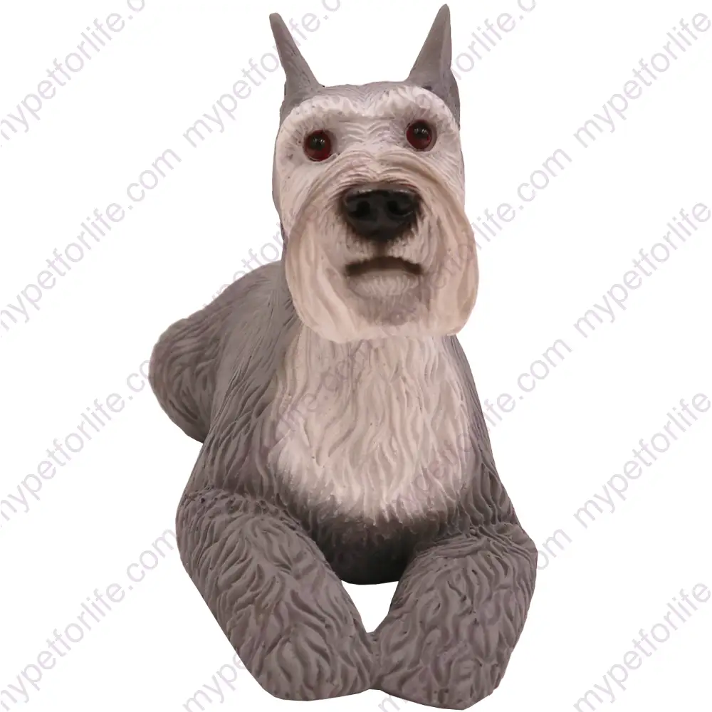 Our most popular urn is our Figurine Urn, made from solid hardwood. (Available in maple, oak, or walnut stain). This urn offers you a choice of over 700 different purebred dog and cat figurines attached to our beautiful wood urn bases. For an additional fee, this Gray Schnauzer memorial cremation urn also includes your personal (4 line 100 character) inscription on a premium leaded brass nameplate. Pet’s bagged ashes are installed through removable bottom which is secured with screws, providing tamper resistant protection. See chart below for enclosure capacity.