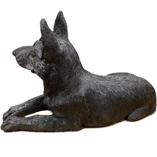 ShadowCastsâ„¢ bronze-look German Shepherd dog urns are truly magnificent works of art, painstakingly cast to capture the essence of the breed in unsurpassed style, class, and quality. This urn is made of cast resin, with colors and additives formulated to simulate the look of cast bronze at a fraction of the cost. The bronze-style finish is a great alternative for German Shepherd owners who are unable to find a match among our Companion Series hollow figurine urns. This premium urn is also heavier than our Companion figurines.