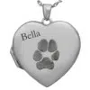 This beautiful heart-shaped, double photo locket has the unique pawprint (or other print) of your beloved pet etched into the surface. Submit your chosen print (pawprint, noseprint, talon-print, hoofprint) to appear on the front of this timeless pet memorial jewelry keepsake. We’ll also engrave your pet’s name on the front at no additional charge (up to 7 characters). This item does not hold ashes but instead has two spaces inside for tiny photos of your choice.