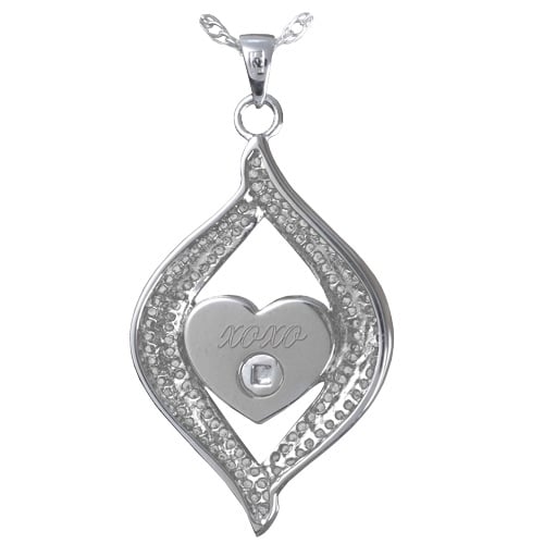 This lovely and elegant Teardrop Ribbon Heart pendant is adorned with your choice of cubic zirconia stones or genuine diamonds (solid gold or platinum only), holds a small memorial of your loved one and comes in several different metals, including platinum and solid gold. The pendant contains a small chamber in which you can store ashes, soil or sand from a favorite beach, or a lock of hair. The pendant is easily filled through the secure opening by your funeral home or by you using the included small funnel. The cremation pendant can be permanently sealed using superglue (not included). These ‘keepsake’ pendants are a wonderful way for family members to share the cremains or other memory of the departed pet.